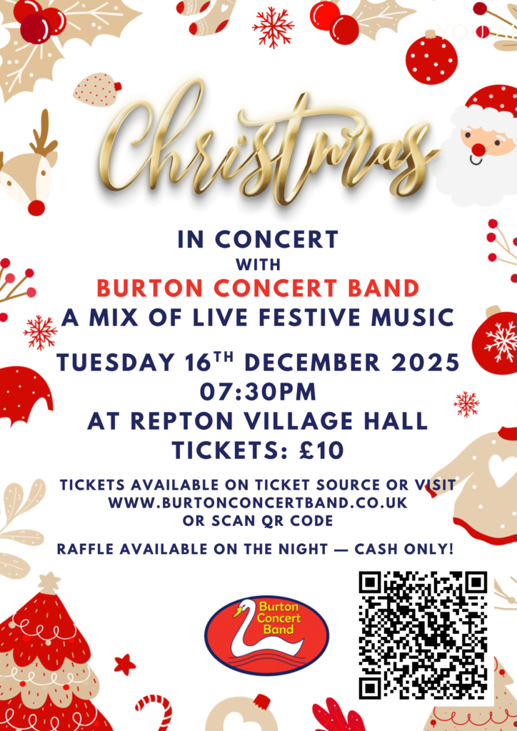 Burton Concert Band are honoured to be playing at the Mayor’s Carol Concert 2025. More details will be shared when available.